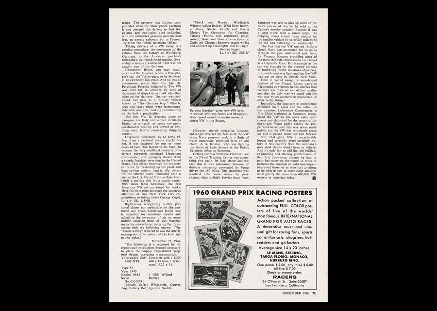 1960 "First VW In The USA" Original Magazine Feature