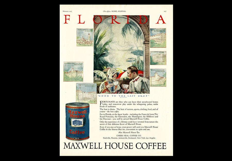 1925 Maxwell House Coffee Florida Tourism Original Magazine Ad